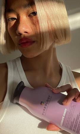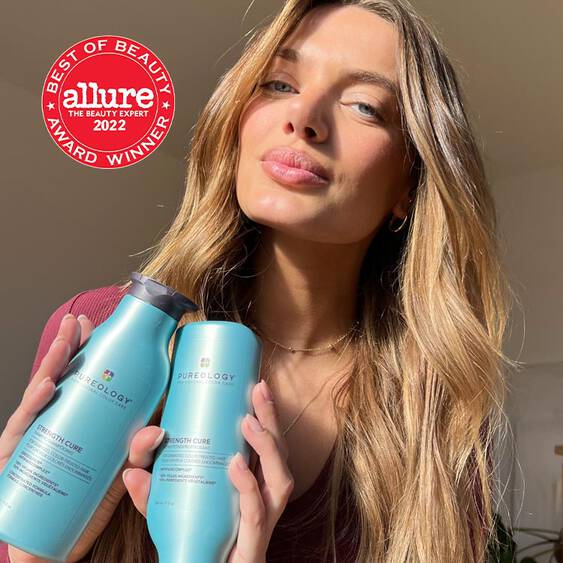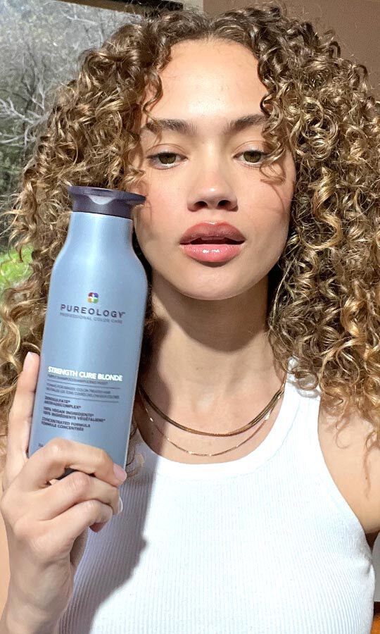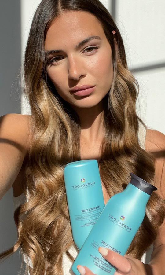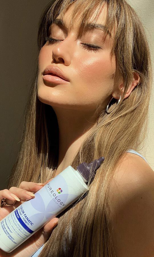 Deep purple formulas that tone down brassiness and strengthen damaged hair.